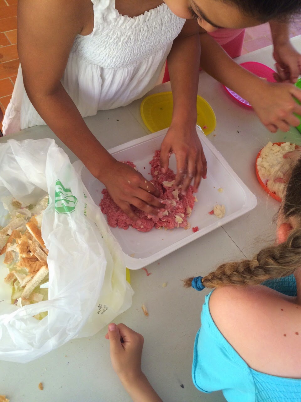 A continuación tuvo lugar, la gran actividad de la tarde: Un taller de cocina en el que prepararíamos ricas hamburguesas! Para que todos pudiésemos participar y comer, hicimos el taller con dos variaciones: Hamburguesas de cerdo y de atún.