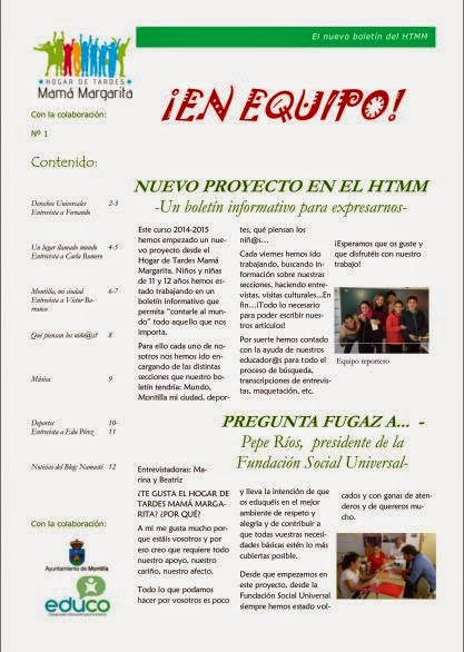 Por fin ha salido a la luz el “número 1” del boletín informativo del Hogar de Tardes Mamá Margarita. Será un boletín trimestral en el que informaremos de temas relacionados tanto con el Hogar de Tardes, como por todo aquello que nos rodea, nos preocupa o nos interesa.