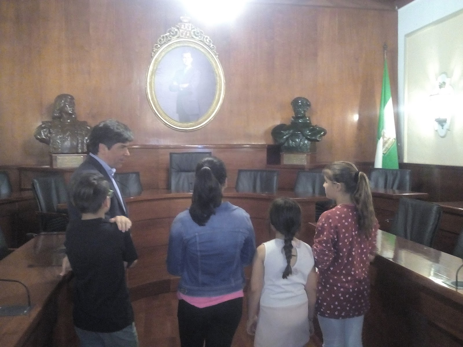 Cuando llegó, se presentó él, que se llama Rafael Llamas y su ayudante. Fuimos al salón de plenos, donde nos explicó que allí se reúnen los concejales para hablar y decidir cosas importantes de Montilla. Es como un parlamento, pero en pequeño. Nos sentamos en las sillas del salón, que eran muy cómodas, y nos hizo una entrevista inesperada.