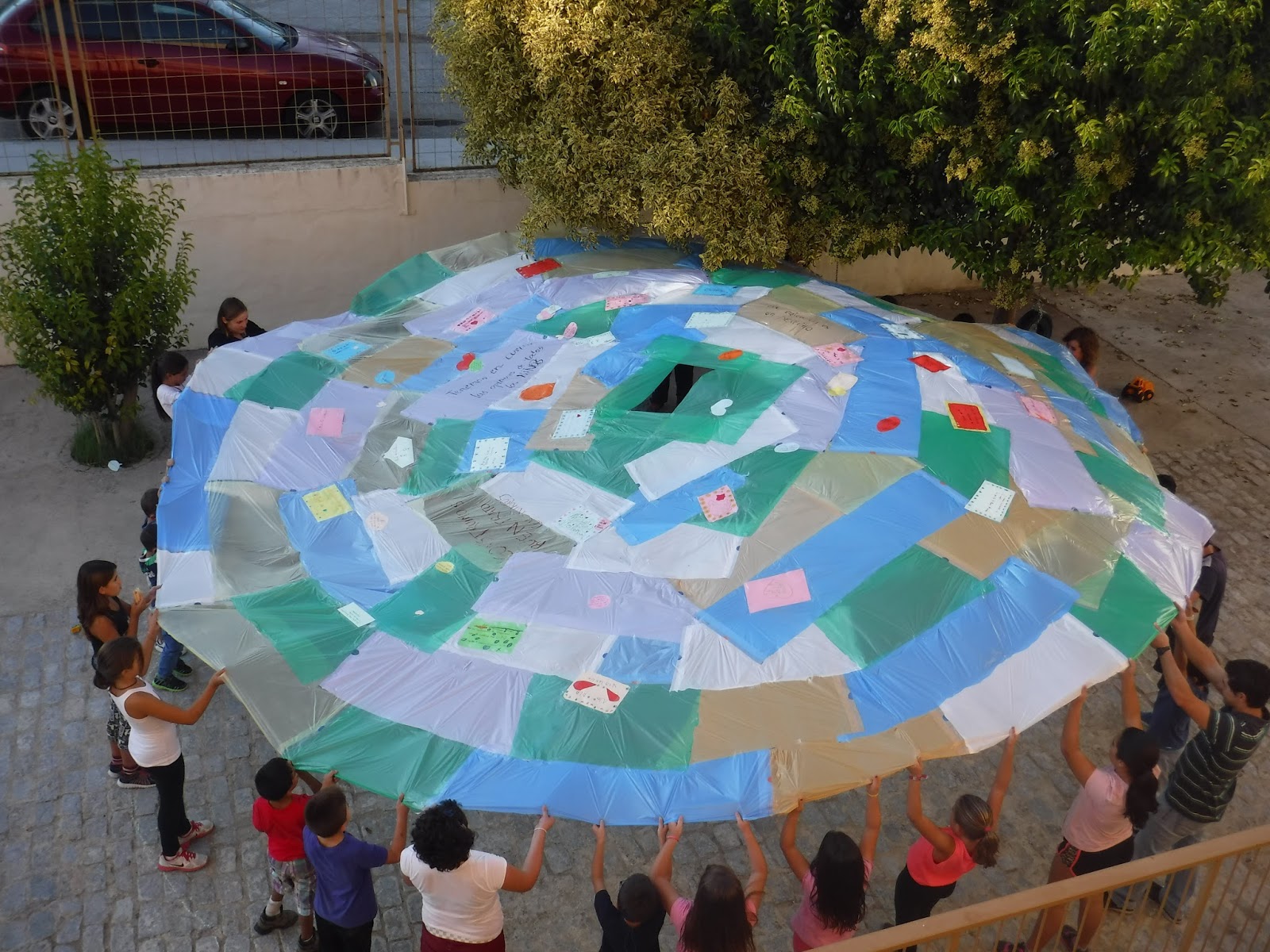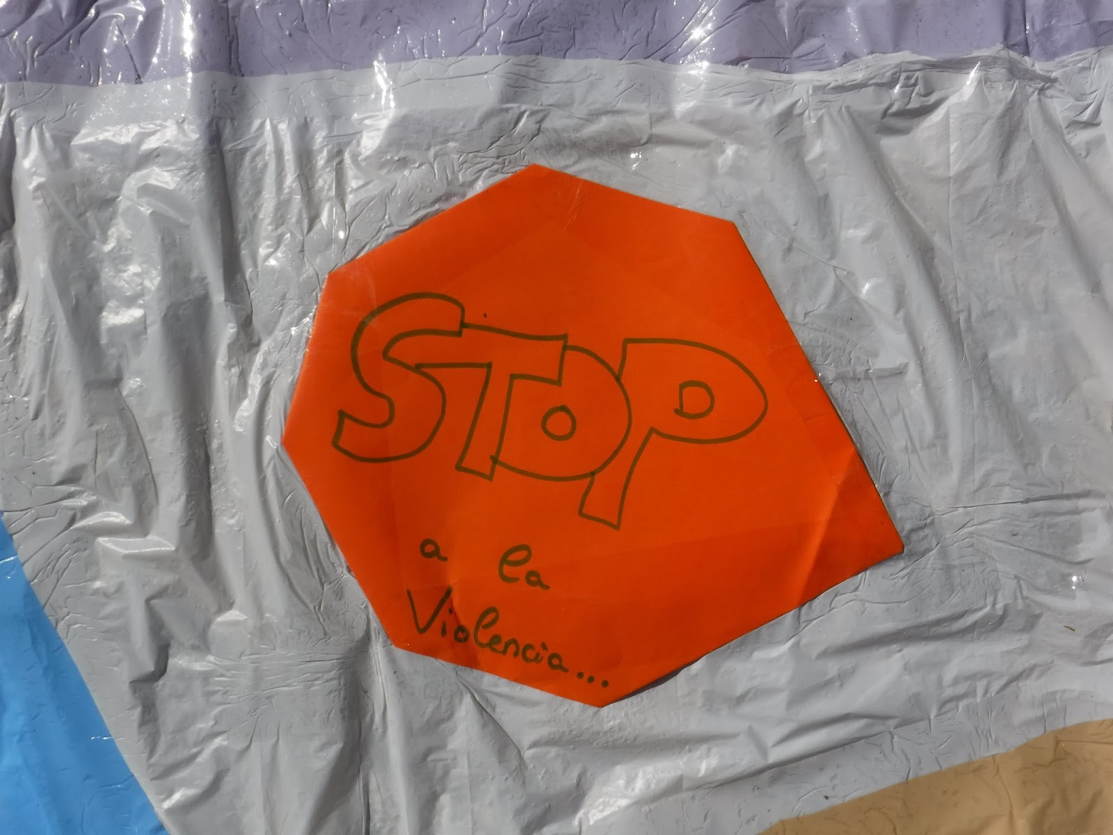 Hemos construido un paraguas gigante entre todos llenito de mensajes contra la violencia a los niños y a las niñas. Me han gustado mucho los juegos que hemos hecho con él. Yo grité mi mensaje alto y claro: Los niños/as tenemos derecho a ser protegidos!!!! Carmen, 12 años