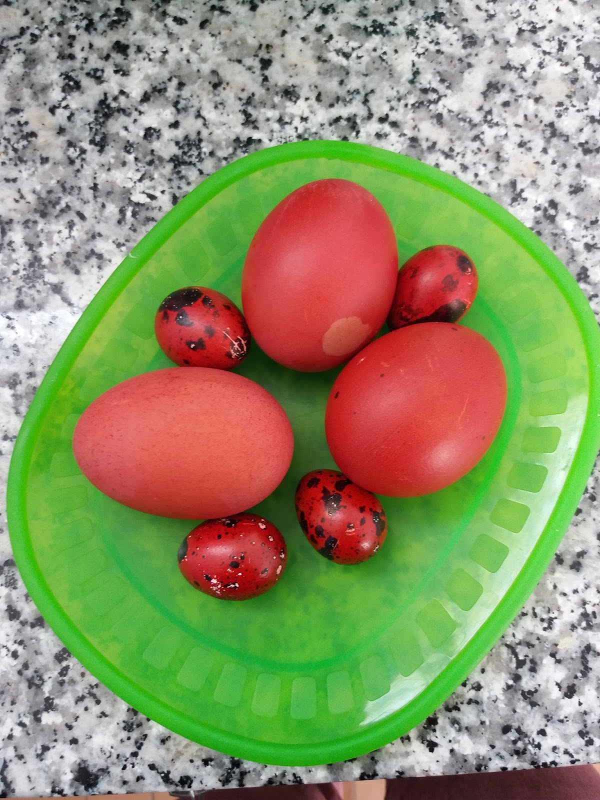 Nosotros quisimos experimentar alguna tradición e hicimos la batalla de los huevos. Primero cocimos los huevos con el colorante rojo. Después, por parejas, se retaron a la lucha de huevos. fue muy divertido.
