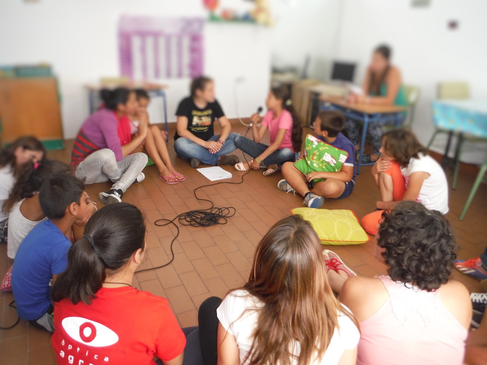 Participamos todos los menores entre 9 y 12 años que cada día asistimos al HTMM. Nos sentamos en círculo y utilizábamos un micrófono para responder cada una de las preguntas que la seño nos hacía. Contestamos preguntas como: ¿Qué significa para ti ser libre? ¿Dónde te sientes seguro y feliz? Si fueras líder de tu país, ¿cual es una de las cosas que harías para proteger a niñas y niños de la violencia en tu país y así mejorar las condiciones de vida de niños y niñas?