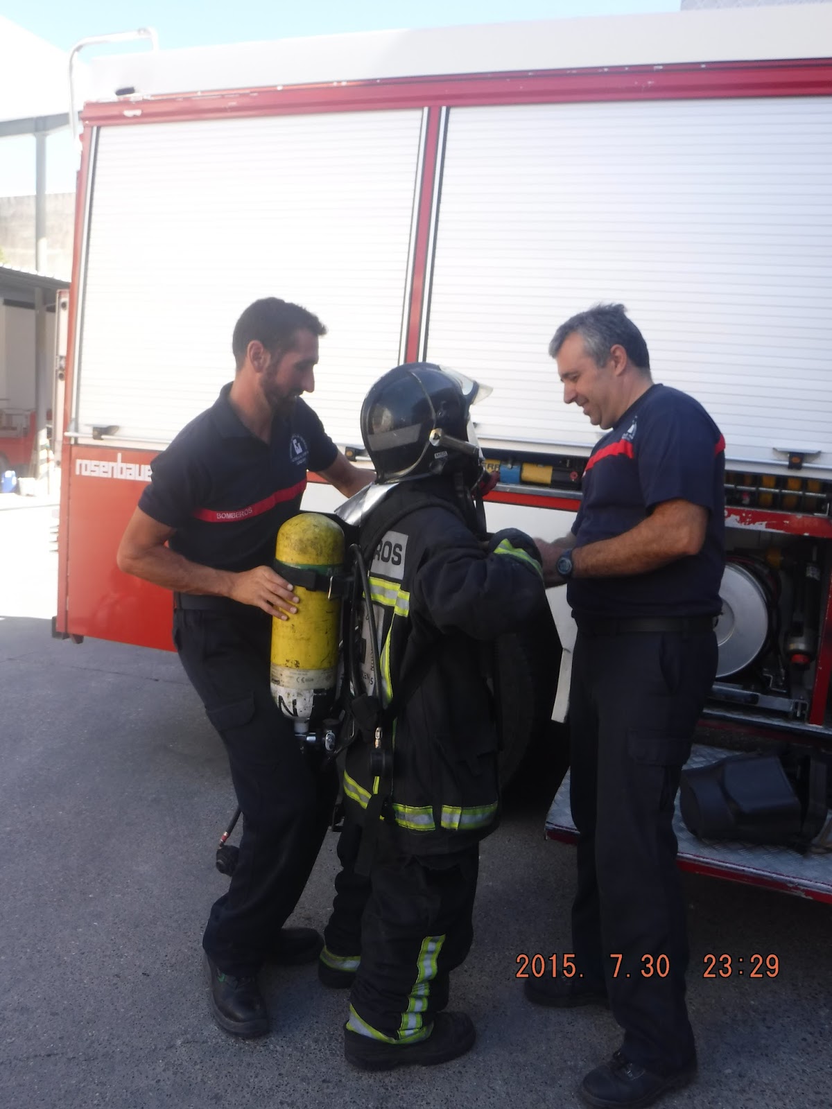 Después nos han mostrado todo lo que lleva un camión por dentro, le han probado un uniforme de bombero a un niño y todos nos hemos podido probar el casco y nos hemos hecho muchas fotos.