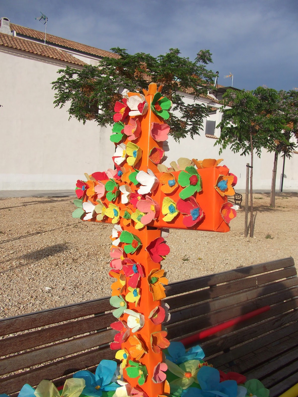 El pasado 30 de mayo, los niños y niñas del Hogar de Tardes, celebramos el día de la cruz de mayo. Durante las semanas previas, estuvimos pintando, recortando y adornando restos de cartones de huevos para convertirlos en bonitas flores que decorarían nuestro paso.